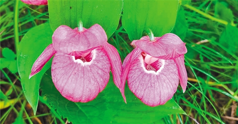 這3種杓蘭屬于內(nèi)蒙古大興安嶺珍稀的植物資源,零星分布在林下、林緣、林間草地上,或三五株,或十余株,每種杓蘭都各具特色。大花杓蘭呈紫紅色,花大,深囊狀的唇瓣如雞蛋般大?。蛔宵c(diǎn)杓蘭花為白色,上面有淡紫色斑點(diǎn);黃囊杓蘭花色為淺黃色,唇瓣為深囊狀近橄欖型。由于杓蘭花朵形狀特別,非常惹人喜愛(ài),許多人慕名來(lái)打卡拍照。