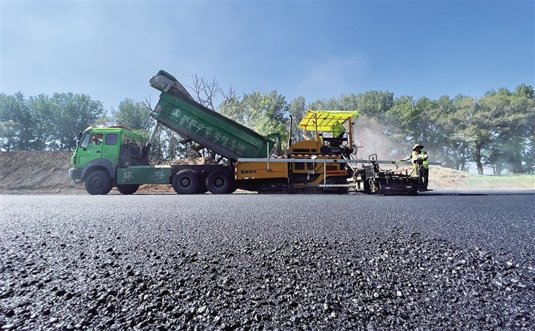 8月5日,施工人員正在鋪設(shè)瀝青。記者從中國二冶集團(tuán)內(nèi)蒙古分公司和林格爾新區(qū)金盛快速路北段-杭蓋路連接線項(xiàng)目部了解到,該項(xiàng)目正在鋪設(shè)瀝青,同時(shí)進(jìn)行智能交通以及道路交通標(biāo)識標(biāo)線施劃等工作,施工完畢后將于近日通車。該路段通車后,將有效緩解呼和浩特南部城區(qū)出城交通壓力,方便群眾出行。(記者 孟和朝魯 攝)