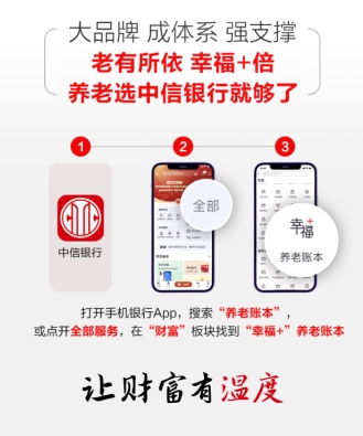 面對萬億規(guī)模個人養(yǎng)老金新藍(lán)海,銀行、基金、保險(xiǎn)等各類型金融機(jī)構(gòu),正加速布局。作為國內(nèi)最早推出年長客戶專屬服務(wù)的商業(yè)銀行,中信銀行始終關(guān)注并積極落實(shí)“應(yīng)對人口老齡化”的國家戰(zhàn)略,打造了包含“一個賬戶、一套產(chǎn)品、一個賬本、一套服務(wù)、一支隊(duì)伍、一份報(bào)告”六大支撐的養(yǎng)老金融服務(wù)體系,并推出“幸福+”養(yǎng)老賬本一站式養(yǎng)老金融服務(wù)平臺,以實(shí)際行動響應(yīng)國家號召、履行社會責(zé)任、助力第三支柱個人養(yǎng)老金制度實(shí)施落地。