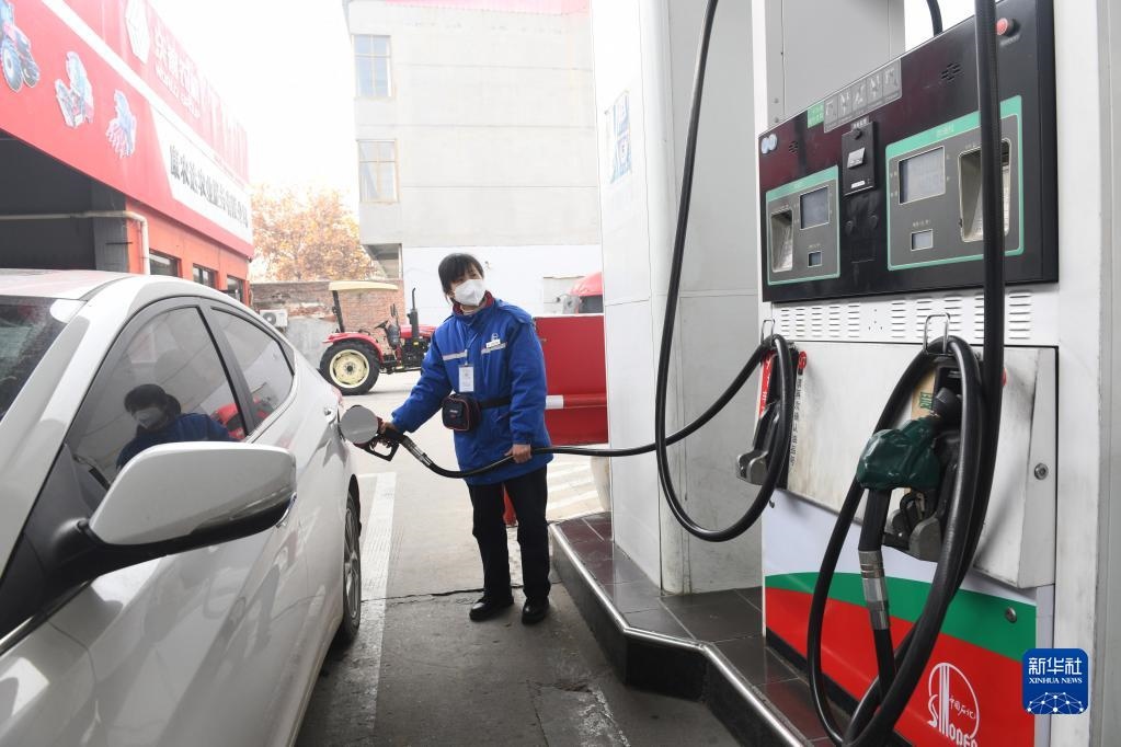 11月21日,河北省新樂市一家加油站的工作人員給汽車加油。新華社發(fā)(賈敏杰 攝)
