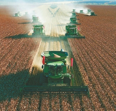 大型農(nóng)機在黑龍江省北大荒集團九三分公司鶴山農(nóng)場高粱基地作業(yè)。 任寶吉攝
