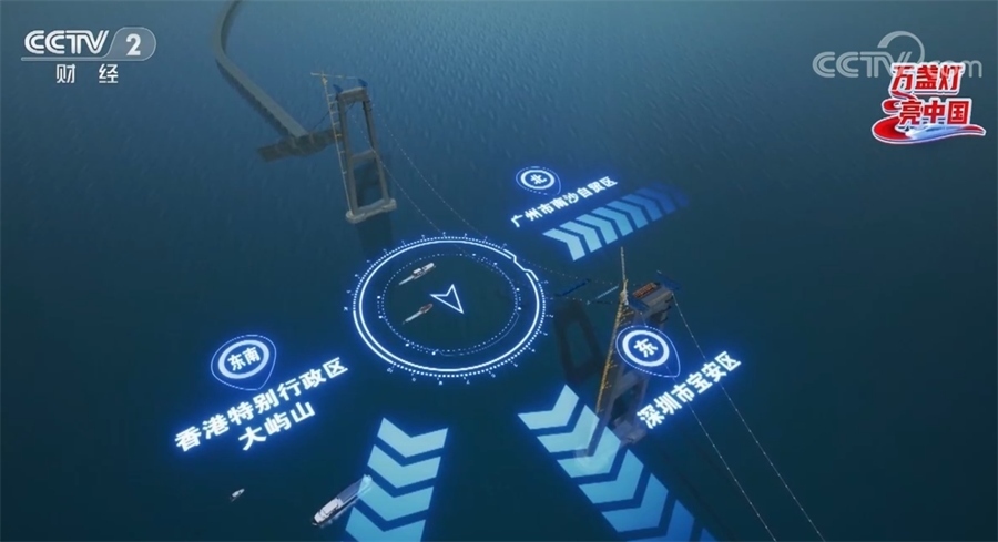 站在這條施工通道上,視野是真好,我的正前方是深圳寶安,東南方向是香港大嶼山,北邊是廣州南沙,背后是中山的馬鞍島,向南、向北分別望去,還依稀可見港珠澳大橋和虎門大橋。腳下的伶仃洋航道水面每天有約4000艘船舶穿行,而頭頂,在高峰時不到一分鐘就會有一架深圳寶安機場起飛的飛機掠過。