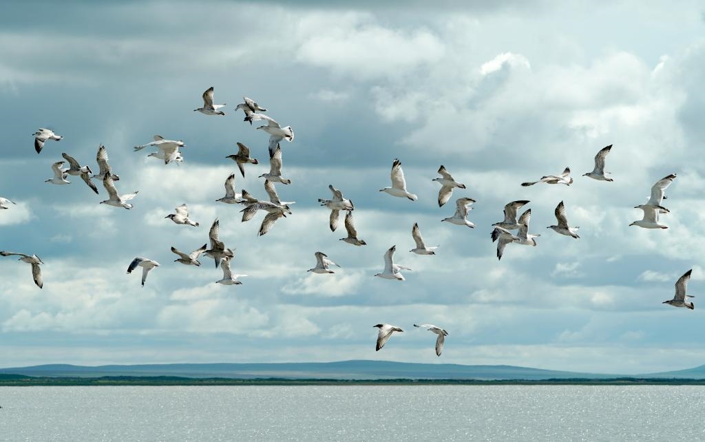 2019年8月28日,呼倫湖上水鳥翔集。新華社記者 陳建力 攝