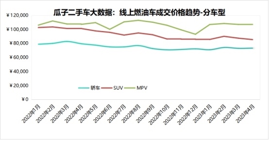 趨勢三:燃油SUV受降價潮影響最大,4月成交均價降近2000元,創(chuàng)15個月來新低