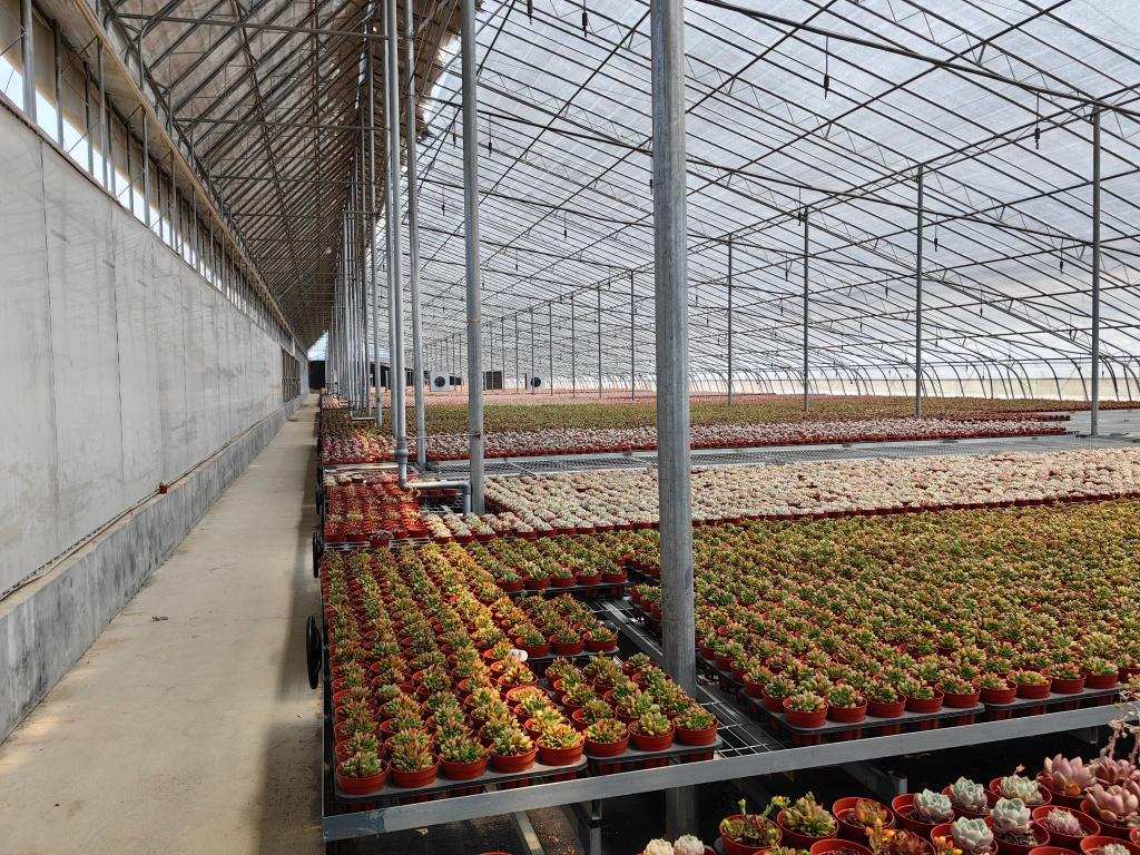 蘆李村的一處花卉大棚內(nèi),各種多肉植物整齊擺放。新華社記者 陳國峰 攝