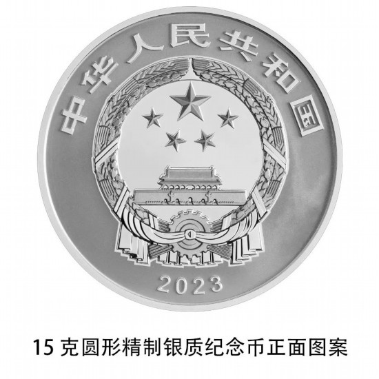 15克圓形銀質(zhì)紀念幣為精制幣,含純銀15克,直徑33毫米,面額5元,成色99.9%,最大發(fā)行量4×80000枚。