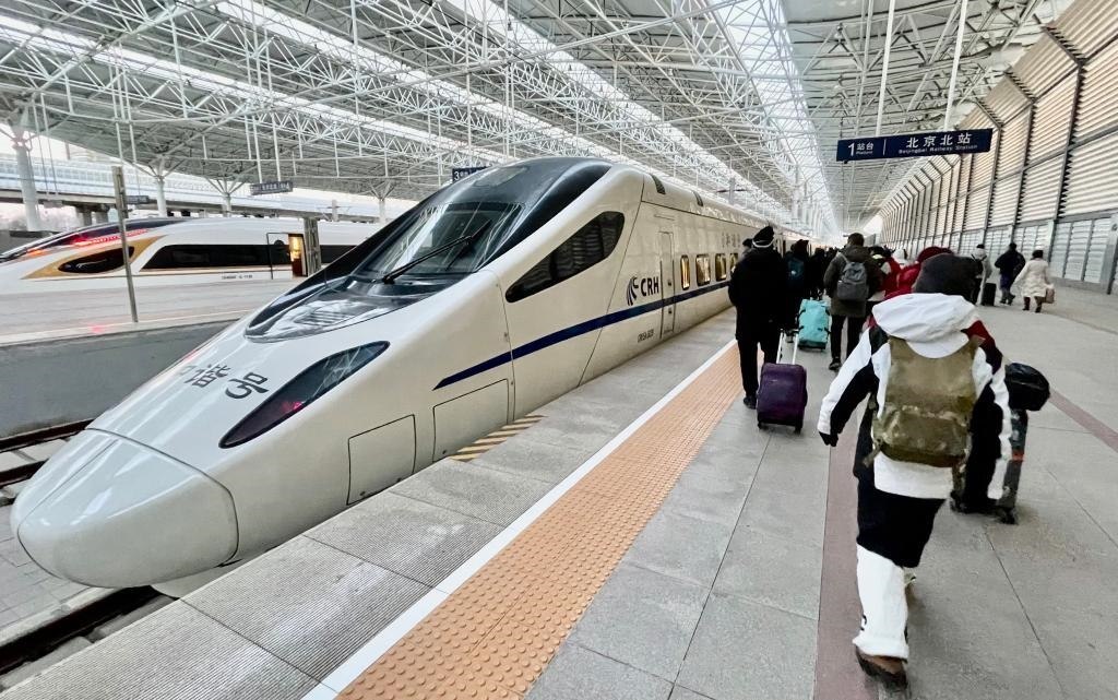資料圖:市民從北京北站乘坐“滑雪專列”去崇禮滑雪休閑。新華社記者 李欣 攝
