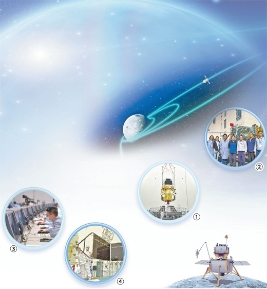 保障探月工程各系統(tǒng)精密運行(講述·弘揚科學家精神) 圖①:五院科研人員在進行嫦娥六號探測器與運載支架的......
