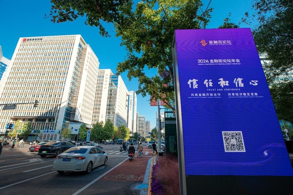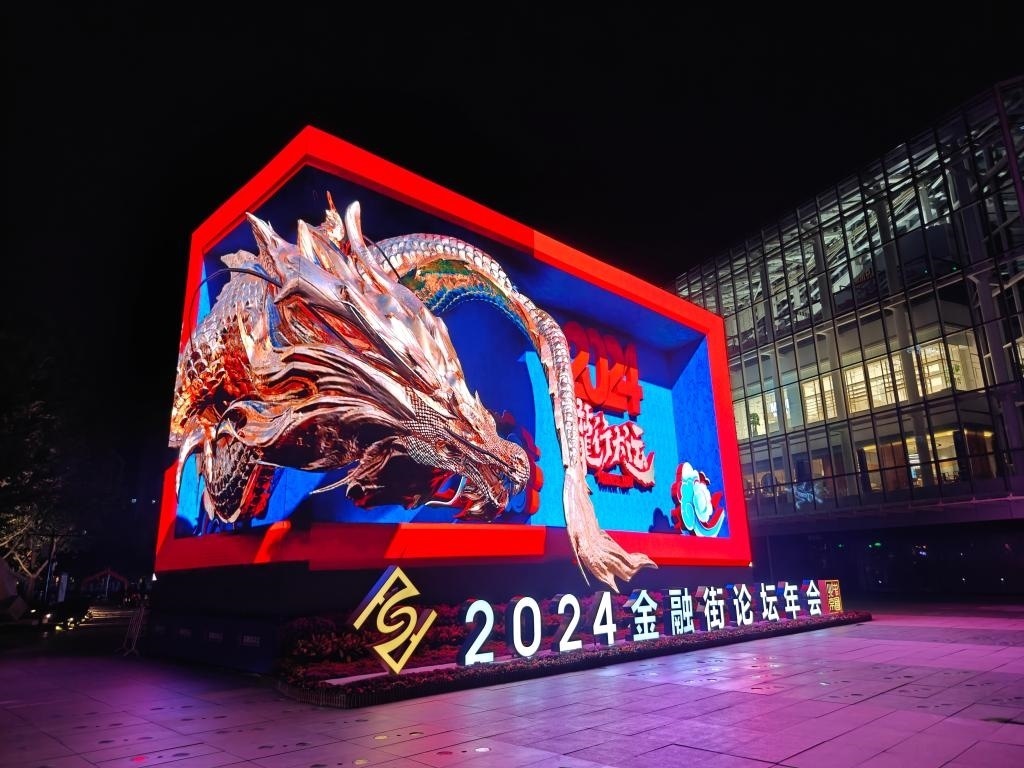 2024金融街論壇年會的會場外設置展示大屏。新華社發(fā)