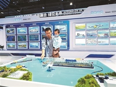 第十六屆國際交通技術(shù)與設(shè)備展覽會(huì)上,觀眾在中國交建展位參觀“太湖生態(tài)清淤工程”模型。杜建坡攝(人民圖片)