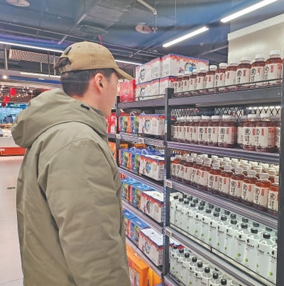 “這兩年賣得最好的是茶飲料,現(xiàn)在很多顧客會選糖分少的飲品?!焙幽相嵵菔薪鹚畢^(qū)一家便利店的店長于妮說。