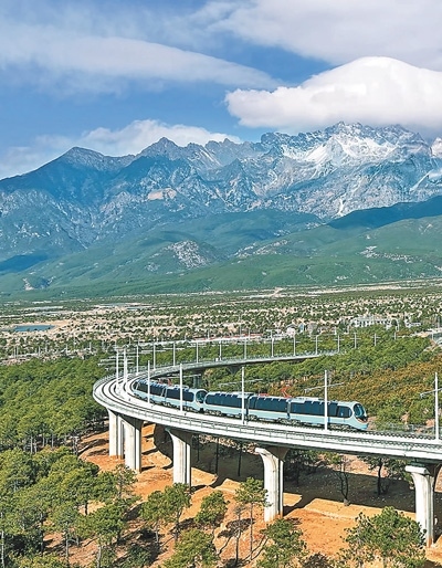 雪山、繁花與牧場,構(gòu)成了一幅美麗畫卷,令人陶醉其中。“風景太美了!”游客賴先生是第二次來云南麗江,這次旅行他體驗了麗江雪山觀光火車。自2月12日開通以來,麗江雪山觀光火車迅速成為旅游界的新“爆款”。這列由我國自主研發(fā)的全球首列全景觀光山地旅游列車,以其獨特的設(shè)計和舒適的體驗,為游客帶來一場別具一格的雪山之旅,更成為連接麗江古城與玉龍雪山的“黃金紐帶”。
