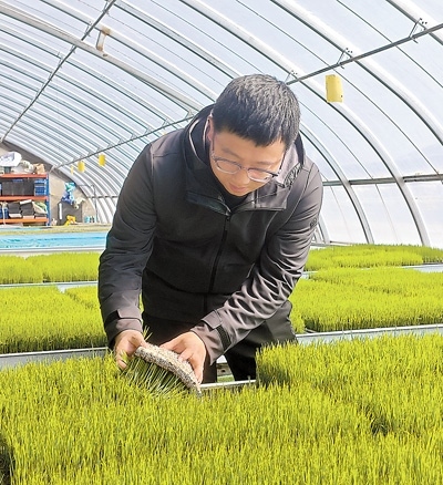 晨曦初照,吉林省農業(yè)科學院水稻研究所副研究員馬巍來到實驗大棚,掀開一塊水稻育苗盤,秧苗青翠茂密,根系密實盤繞。
