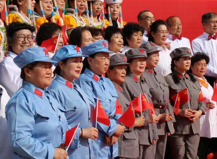 開展建黨百年群眾文化系列活動以來,呼市共舉辦大型專場演出20余場。在人民公園設置了“永遠跟黨走——群眾文化廣場”、“合唱廣場”、“廣場舞廣場”,給廣大群眾提供了參與建黨百年群體活動的集中展示平臺,進一步豐富了廣大人民群眾的精神生活,營造出全社會感黨恩、頌黨恩的濃厚氛圍。此外,青城公園內三個“主題廣場”設立后,廣大市民群眾也紛紛合影留念,自發(fā)組織起來唱紅歌、跳廣場舞,以多種形式積極參與活動。據統(tǒng)計,截至目前由群眾自發(fā)組織在社區(qū)、公園、廣場開展的展演活動近千余場,參與人數達幾十萬人次,掀起了建黨100周年群眾性文化活動的高潮。