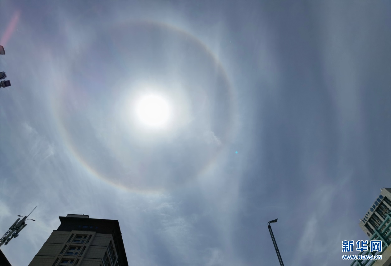 5月25日午后,內(nèi)蒙古自治區(qū)呼和浩特市上空出現(xiàn)日暈,巨大的暈環(huán)圍繞在太陽四周,十分壯觀。新華網(wǎng) 楊騰格爾 攝