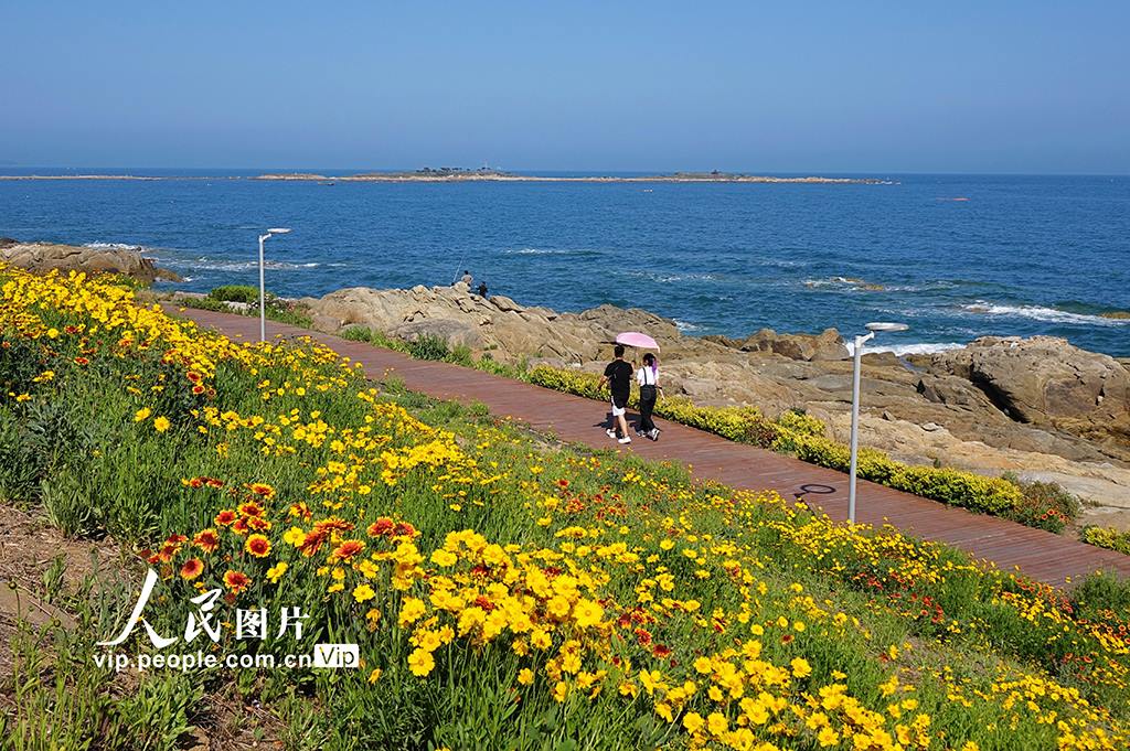 近日,青島海岸邊的金雞菊盛放成片片黃色花海,與蔚藍(lán)的大海相映生輝,美不勝收。韓波攝(人民圖片網(wǎng))