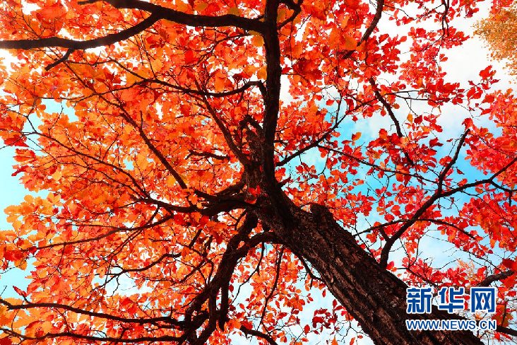 相思谷白樺林金黃色的樹葉在枝頭搖曳,襯托著遠(yuǎn)處的松林綠葉。白樺樹下綻放著絢麗的紅葉,微風(fēng)吹起便簌簌地飄落,仿佛若干的彩蝶在林間飛舞。(9月28日攝)新華網(wǎng)發(fā)(欒維敬 攝)