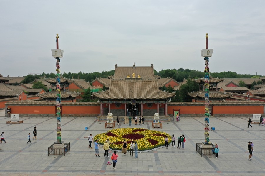 在敖包山下,是著名的貝子廟。歷史上,錫林浩特曾以“貝子廟”為地名稱謂,這座始建于1743年(清乾隆八年)的寺廟,是一座凝聚著蒙、漢、藏多民族文化藝術(shù)的古建筑瑰寶。解放戰(zhàn)爭時(shí)期,貝子廟還是內(nèi)蒙古重要的革命根據(jù)地。