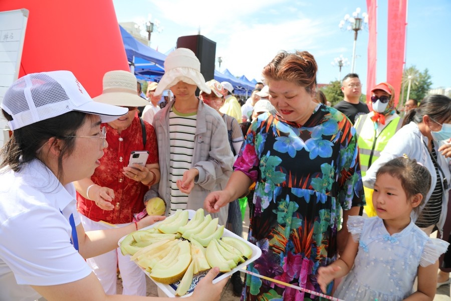北疆新聞磴口7月18日電 7月18日,以“建設(shè)富饒美麗、開放包容新磴口”為主題的磴口縣慶祝中華人民共和國(guó)成立75周年暨第三十二屆華萊士節(jié)開幕。啟動(dòng)儀式上,舉行了華萊士瓜品評(píng)、特色農(nóng)產(chǎn)品展示等活動(dòng)。