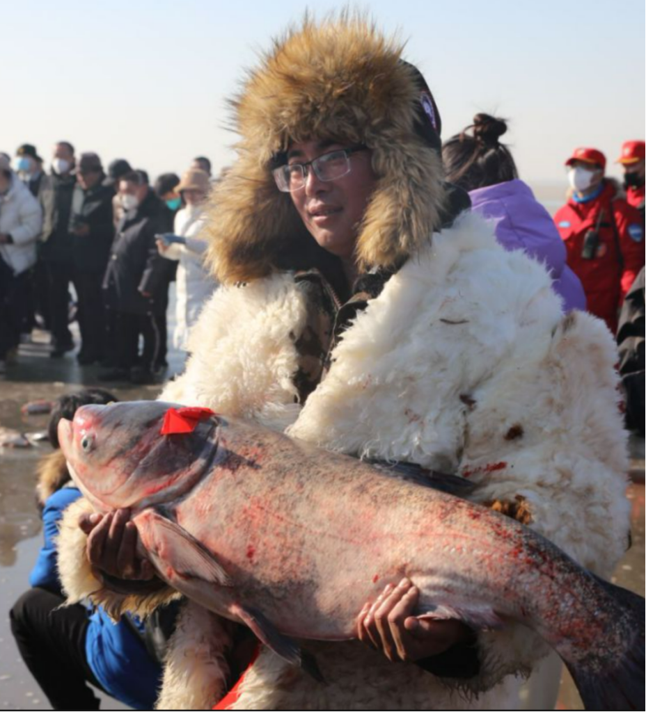 2022年起,土默特左旗利用哈素海天然的物產(chǎn)優(yōu)勢開辦“冬捕節(jié)”,待到冰面凍結(jié)實,就可以開冰放網(wǎng),一夜過后就可以拉網(wǎng)收魚,此時岸邊的大鐵鍋早已沸騰,只等鮮魚下鍋。一碗燉魚下肚,冬季的嚴(yán)寒無影無蹤,只余下滿口鮮香和帶著暖意的豐收喜悅。這一鍋暖意仍將延續(xù),哈素海的鮮魚即將在2025年1月歡騰于冰面,等著游客來品嘗這份隆冬的饋贈。