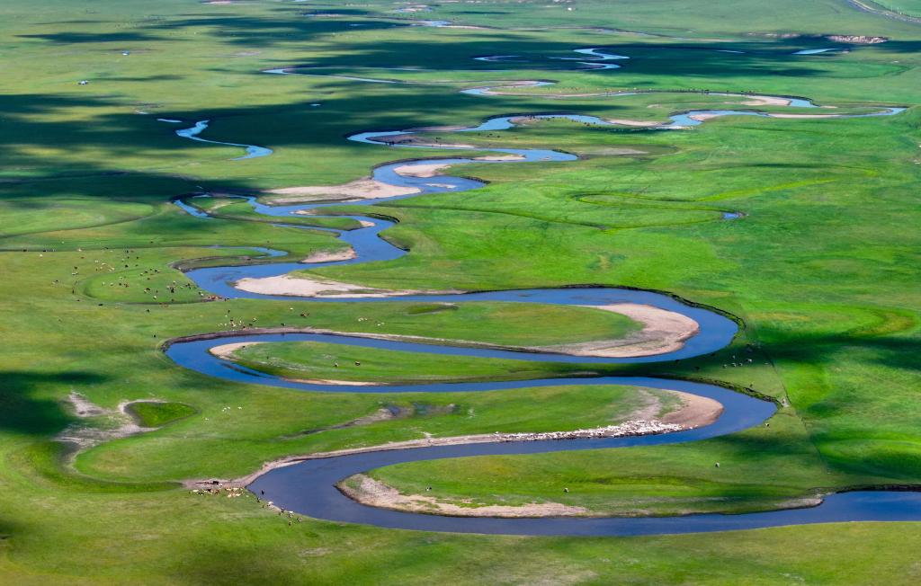 以“曲”聞名天下的莫爾格勒河發(fā)源于內(nèi)蒙古自治區(qū)呼倫貝爾市陳巴爾虎旗境內(nèi),全長(zhǎng)319公里。盛夏時(shí)節(jié),迂回輾轉(zhuǎn)的河道、低垂的云影、成群的牛羊共同構(gòu)成一幅宛如油畫(huà)般的草原風(fēng)情畫(huà)卷。
