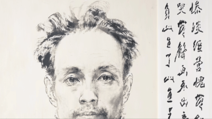 與病重時(shí)疲憊的狀態(tài)截然不同,王子武在畫作中刻畫自己的形象精神飽滿,飛揚(yáng)的發(fā)絲充滿朝氣。畫作《子武自寫》中,人物眼神堅(jiān)定,造型簡潔、穩(wěn)定,充滿力量感。整幅畫作表現(xiàn)了王子武將生命奉獻(xiàn)給繪畫的自信和決心。