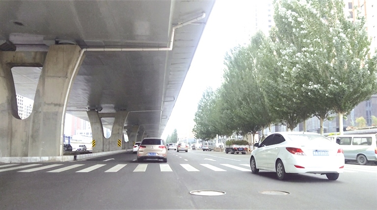井蓋高低不平金海路高架橋下輔道很顛簸 攝影/北方新報(bào)正北方網(wǎng)首席記者 張學(xué)博