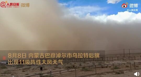 8月8日16時12分至16時23分,內(nèi)蒙古自治區(qū)巴彥淖爾市烏拉特后旗獲各琦蘇木海力素國家基準氣候站出現(xiàn)11級陣性大風天氣,最大瞬時風速28.5m/s,達到11級,海力素最小能見度192米,出現(xiàn)強沙塵暴天氣。(張棖 王衛(wèi)東)