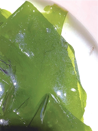 據(jù)劉女士回憶,8月9日晚,她和女兒到鄂爾多斯市伊金霍洛旗額爾敦傳統(tǒng)涮(伊旗店)吃飯,母女二人正吃得暢快之際,突然發(fā)現(xiàn)在一盤海帶里有一只蜘蛛(如圖),在盤子里爬來爬去,看見這一幕,母女二人胃口全無。隨即,劉女士和服務人員進行了溝通。
