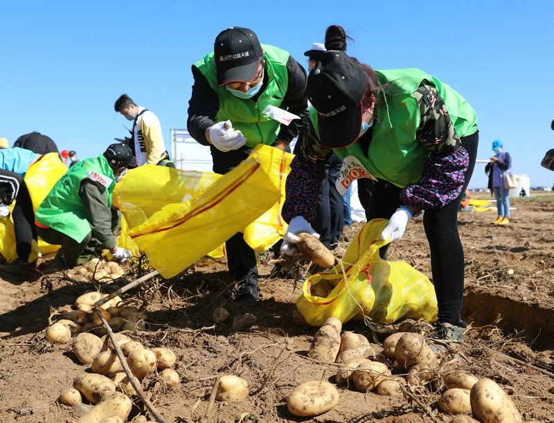 豐收節(jié)現(xiàn)場,還舉行了別開生面的土豆趣味運(yùn)動會,6支代表隊參加了比賽,裁判員以速度計時、數(shù)量稱重等方式來決定最后的勝負(fù),比賽過程熱火朝天,參賽者的臉上洋溢著喜悅的笑容。