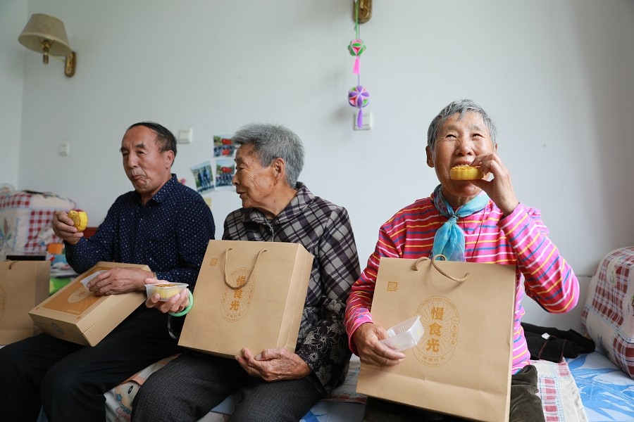 崔玉蘭老人熱情地邀請大家走進她的臥室。安德爾打開一盒月餅遞給了崔玉蘭老人。“好吃,好吃!”老人嘗了嘗月餅說道。