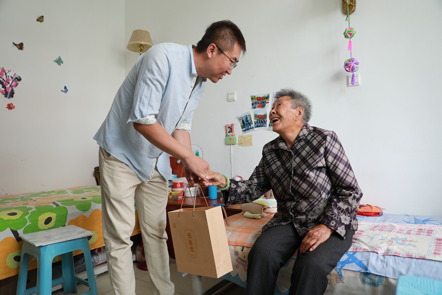 福康老年公寓是一所集醫(yī)、養(yǎng)、教三位一體的“AAAAA”級養(yǎng)老機構(gòu),現(xiàn)有工作人員75名。崔玉蘭老人今年86歲,是一位小學(xué)退休老師,2016年來到??道夏旯?。“5年了,這里的工作人員照顧得特別好。我平時愛畫畫、彈琴,還跟其他老人聊天,心情也舒暢了。”崔玉蘭老人笑著說?!案兄x企業(yè)為這些和藹可親的老人們獻愛心?!崩钣懒帘磉_謝意。