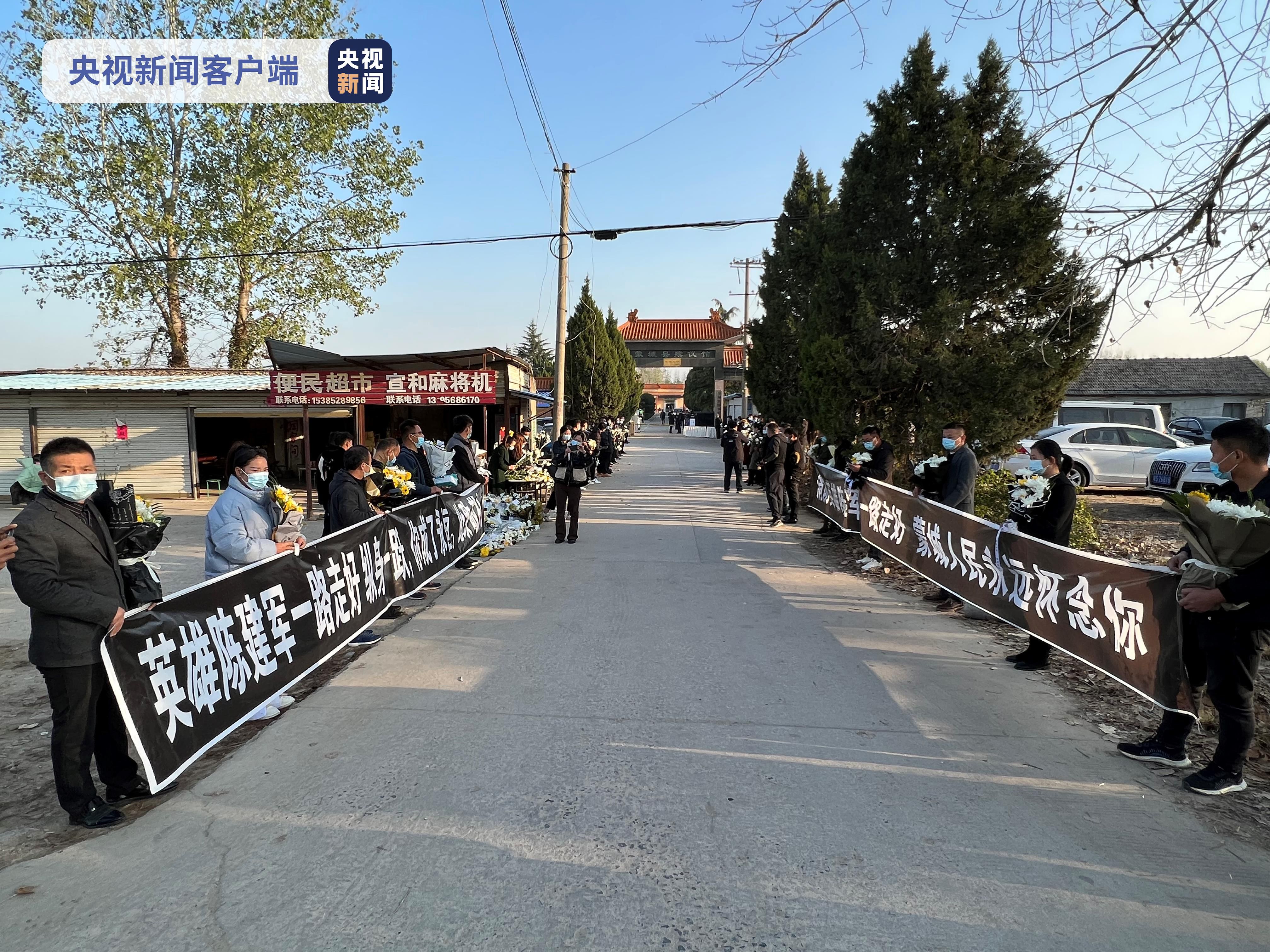 蒙城縣主城區(qū)的嵇康路是通往高速口的一條主干道,也是陳建軍的靈車從蒙城縣殯儀館回往老家淮南的必經(jīng)之路。嵇康路的兩邊,今天一大早,蒙城縣的不少群眾都在這里守候,等待為英雄送行。