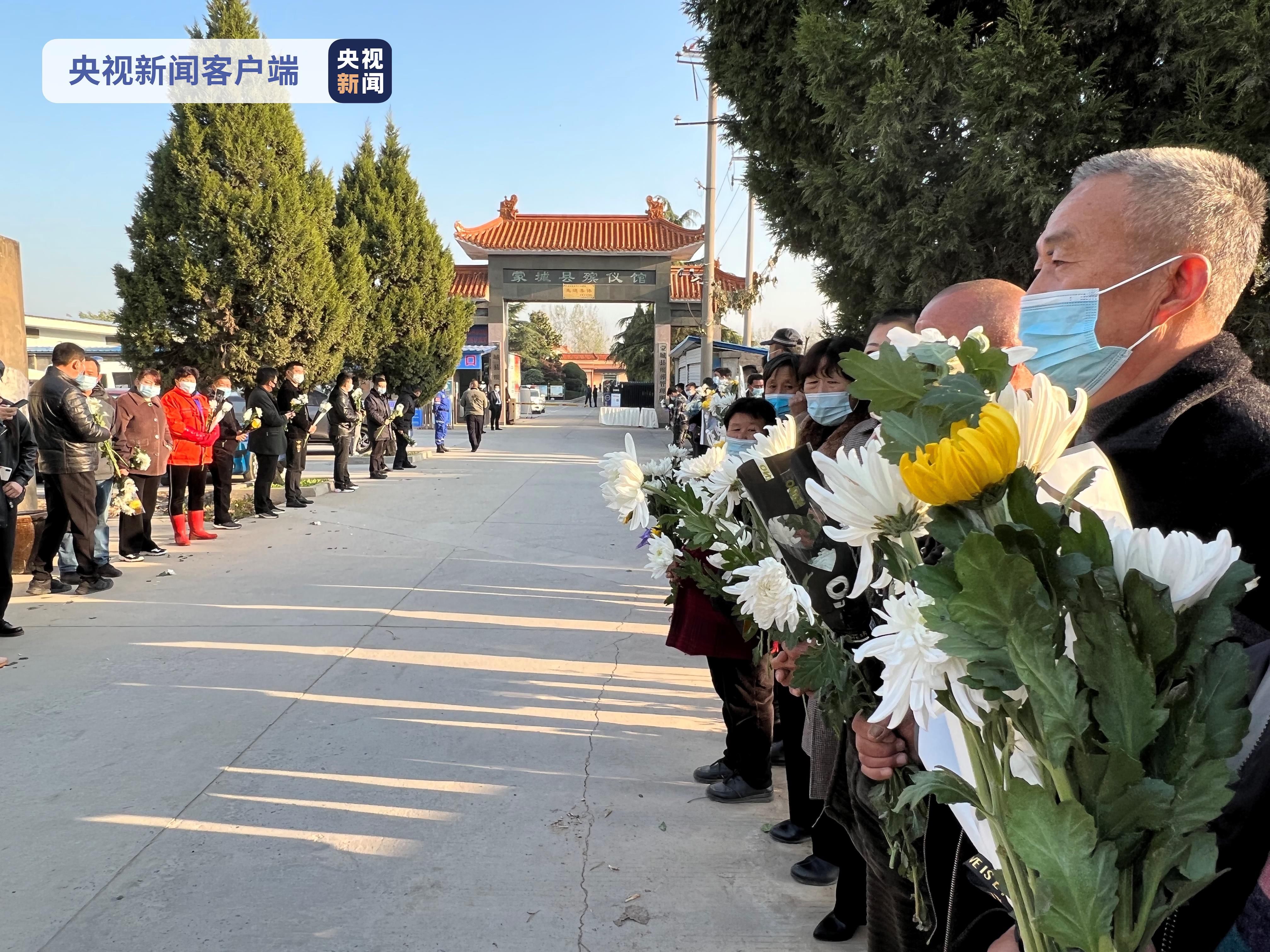 今天早上7時(shí)不到,總臺(tái)記者在現(xiàn)場看到,很多群眾就自發(fā)來到蒙城縣殯儀館的門口,大家手持鮮花,守候在通往殯儀館的道路兩旁。送別的鮮花上,大家用卡片寫著“英雄,一路走好”等,寄托對犧牲消防員的哀思。