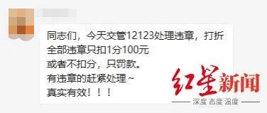“同志們,今天交管12123處理違章(法),打折全部違章(法)只扣1分100元,或者不扣分,只罰款?!?/p>