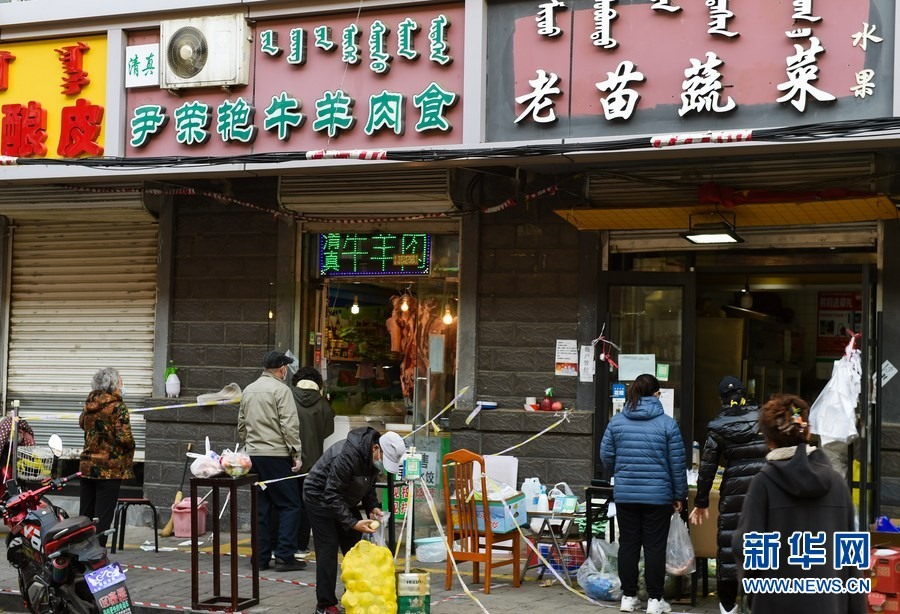 11月17日,市民在呼和浩特市新城區(qū)的商店排隊購物。新華社記者 王澤聰 攝