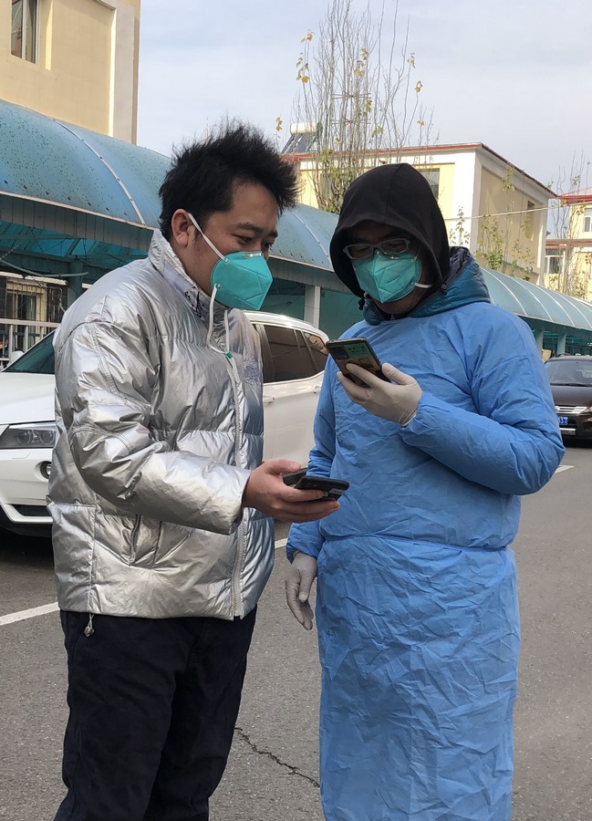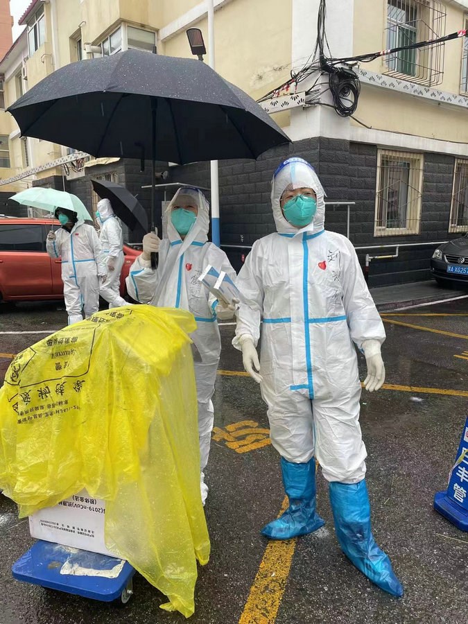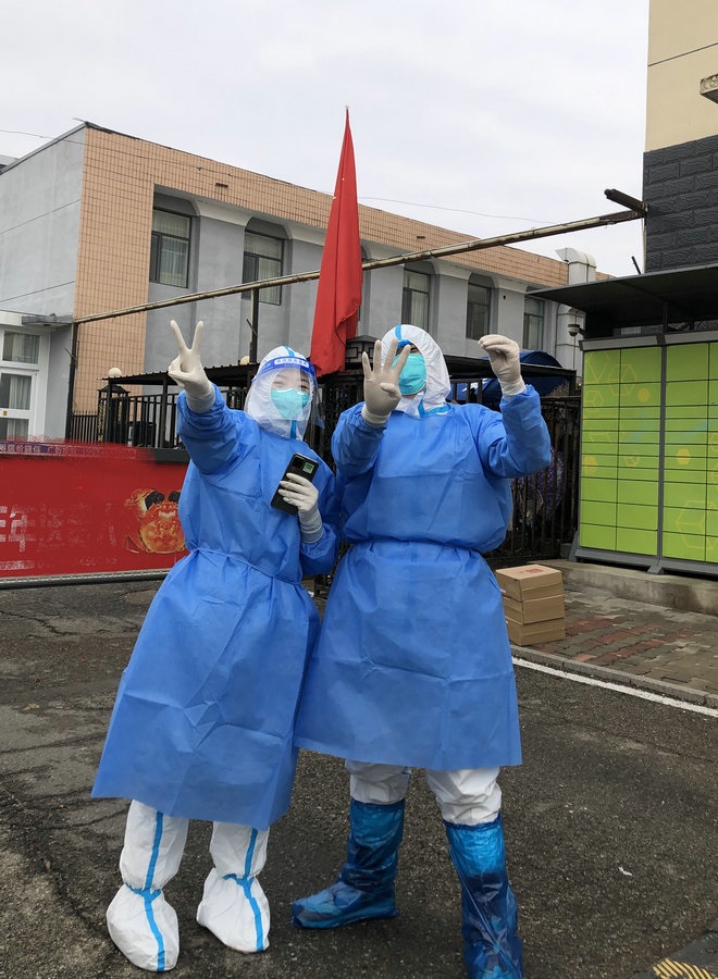 “我們倆都是機關(guān)下沉到社區(qū)的黨員志愿者。剛開始,大家都是自發(fā)的,我們每個人都是這樣,默默奉獻,因為,我既是黨員,也是社區(qū)的居民,這是我應(yīng)該做的?!毖惥暾f。
