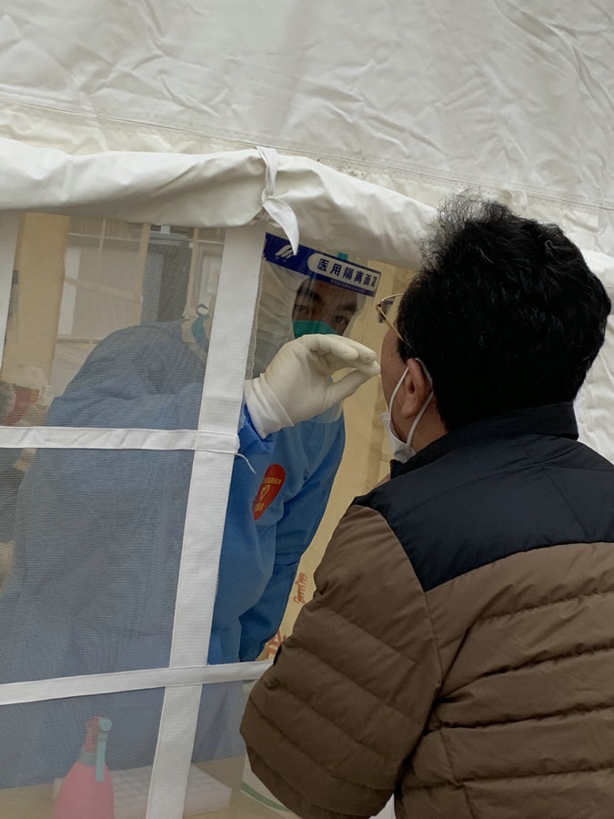 “我加入團隊的時候,小區(qū)正好出現(xiàn)了陽性感染者,這個時期是最困難的。我就想,既然選擇了做這個事,就要義無反顧?!睆埿∮抡f,“那會兒都是前一天晚上才通知第二天核酸要怎么采集,我們就當晚商量第二天在哪兒采集核酸。因為當初還沒有搭帳篷,為了快速采集,有時還要增加一組核酸采樣人員,我們還要考慮在哪選址。其實剛開始,真的是特別困難?!?/p>