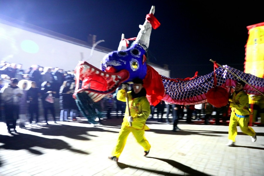 2月6日(農(nóng)歷正月十六)晚,黃河岸邊的古村落——呼和浩特市托克托縣雙河鎮(zhèn)河口村,一派熱鬧景象,當(dāng)晚的社火舞龍表演,吸引了周邊眾多居民前來(lái)圍觀。