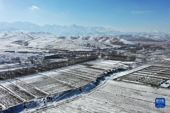 2月14日拍攝的烏鞘嶺及周邊雪景(無人機照片)。