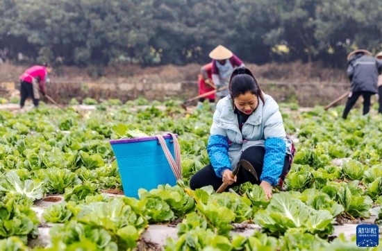 2月17日,農(nóng)戶(hù)在貴州省六盤(pán)水市六枝特區(qū)木崗鎮(zhèn)木崗沖村采收白菜。