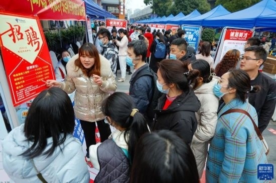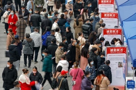 2月17日,人們在中國成都人力資源服務產(chǎn)業(yè)園查看招聘信息,尋找工作機會。