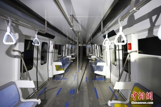 2月20日,在東壩車輛段內(nèi)停放的北京地鐵12號線列車車廂內(nèi)景。北京地鐵12號線正線全長為29.6km,西起西四環(huán)四季青橋南,東至東壩北街,途經(jīng)海淀、西城、東城、朝陽四個行政區(qū),全線共設(shè)21座車站,其中換乘站15座,全線建成通車后,將與4號線、5號線、8號線等12條線路實(shí)現(xiàn)換乘。當(dāng)前12號線車輛陸續(xù)進(jìn)場,工程正在加速推進(jìn)。中新社記者 富田 攝