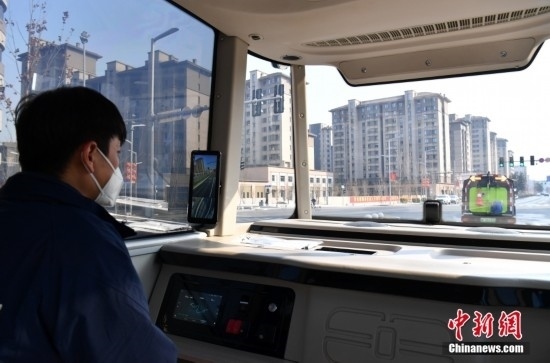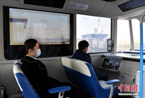 2月22日,智能網(wǎng)聯(lián)巴士901線測試車輛??抗徽九_。雄安新區(qū)的智能網(wǎng)聯(lián)巴士近期正在進(jìn)行投入運(yùn)營前的道路測試,該巴士配備了超高感度攝像頭、超聲波雷達(dá)、激光雷達(dá)、毫米波雷達(dá)等感知設(shè)備,組成了車輛的“眼睛”。車輛可自主識別紅綠燈、道路提示牌和車道標(biāo)線等,做出跟車、超車、停車等動作。中新社記者 韓冰 攝