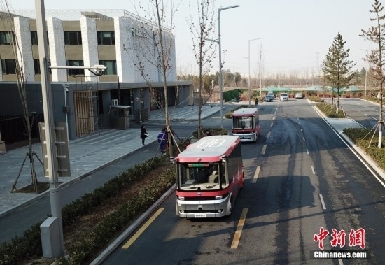 2月22日,智能網(wǎng)聯(lián)巴士901線測試車輛與普通城市公交車駛出公交站臺。雄安新區(qū)的智能網(wǎng)聯(lián)巴士近期正在進(jìn)行投入運(yùn)營前的道路測試,該巴士配備了超高感度攝像頭、超聲波雷達(dá)、激光雷達(dá)、毫米波雷達(dá)等感知設(shè)備,組成了車輛的“眼睛”。車輛可自主識別紅綠燈、道路提示牌和車道標(biāo)線等,做出跟車、超車、停車等動作。中新社記者 韓冰 攝