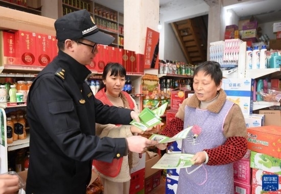 2月22日,在八里店鎮(zhèn)西山社區(qū),黨員志愿者和行政執(zhí)法隊(duì)員向沿街商戶發(fā)放垃圾分類、沿街清運(yùn)的告知單。
