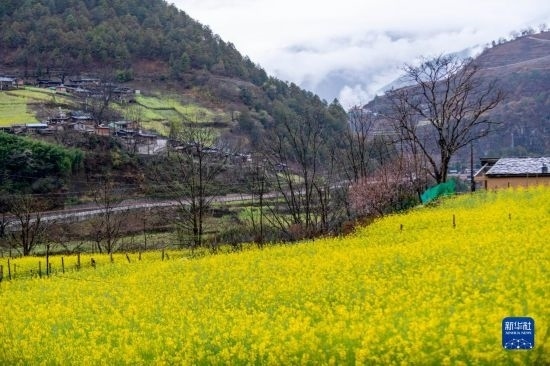 在怒江傈僳族自治州貢山獨龍族怒族自治縣丙中洛鎮(zhèn)茶臘村拍攝的油菜花(2月23日攝)。