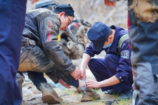 圖為庫地邊境檢查站移民管理警察查看遇險群眾傷情。