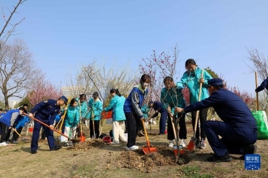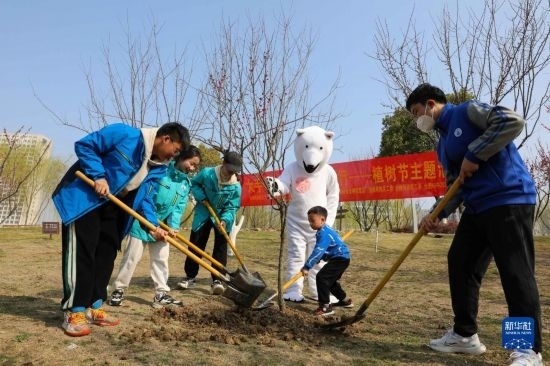 當(dāng)日,合肥市包河區(qū)濱湖世紀(jì)社區(qū)聯(lián)合轄區(qū)消防工作人員在雨水公園開展“手牽手護(hù)綠一起行”義務(wù)植樹活動,綠化家園。