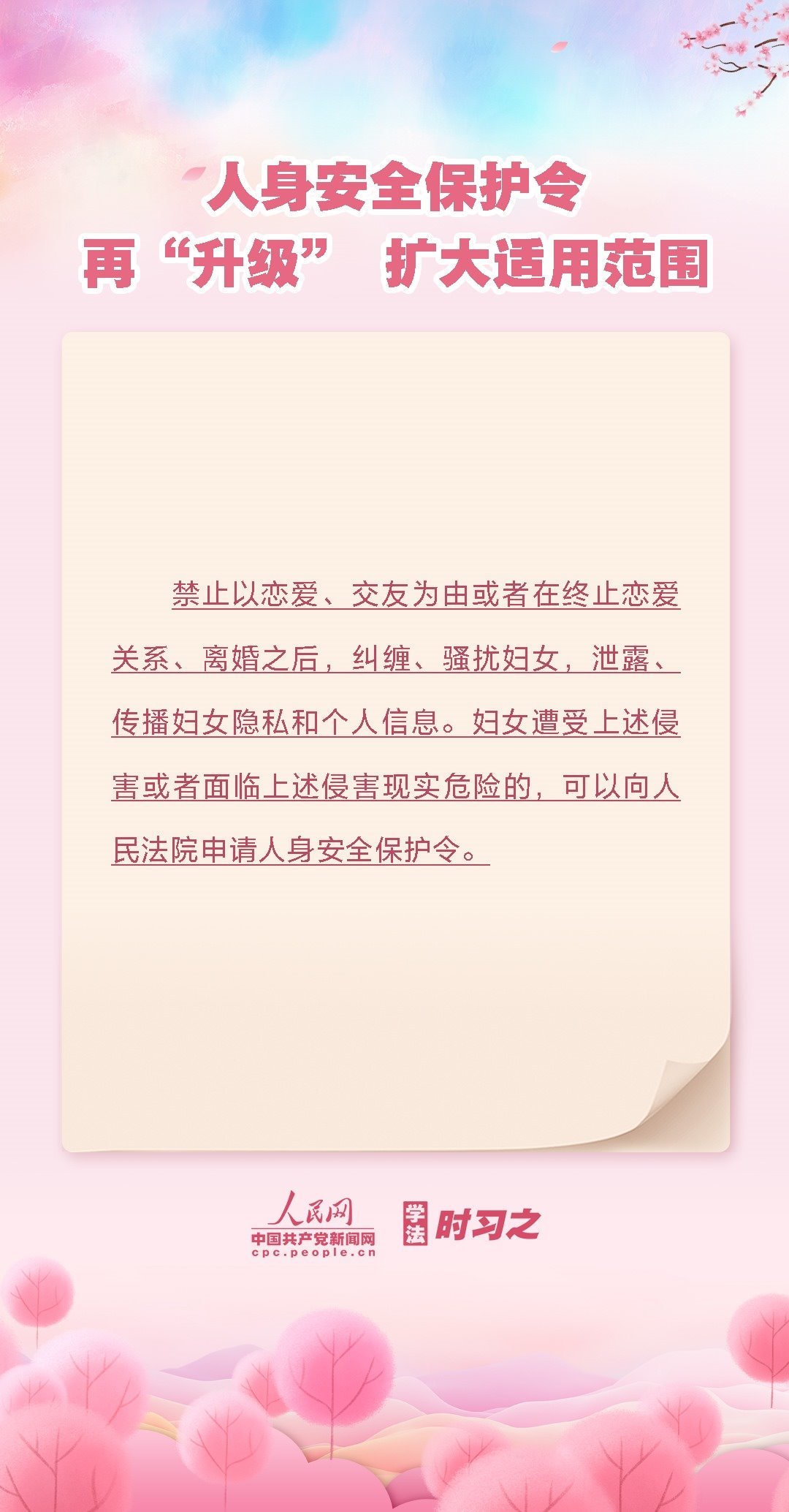 2023年1月1日,新修訂的《中華人民共和國婦女權(quán)益保障法》正式實(shí)施。此次修訂將男女平等基本國策納入國民教育體系,同時(shí)完善政府相關(guān)保障措施,預(yù)防和處置性騷擾、性侵害制度機(jī)制。這對進(jìn)一步維護(hù)婦女合法權(quán)益、改善婦女發(fā)展環(huán)境具有重大而深遠(yuǎn)的意義。今天是“三八”國際勞動(dòng)?jì)D女節(jié),讓我們一起了解一下。